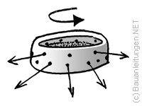 Die Zentrifuge hat an der Aussenwand kleine Öffnungen durch die der verflüssigte Zucker hinausgeschleudert wird. Dabei kühlt sich der geschmolzene Zucker in langen Fäden ab und wechselt seine Struktur von kristallin in amorph, das ergibt den typisch weichen Geschmack der Zuckerwatte.